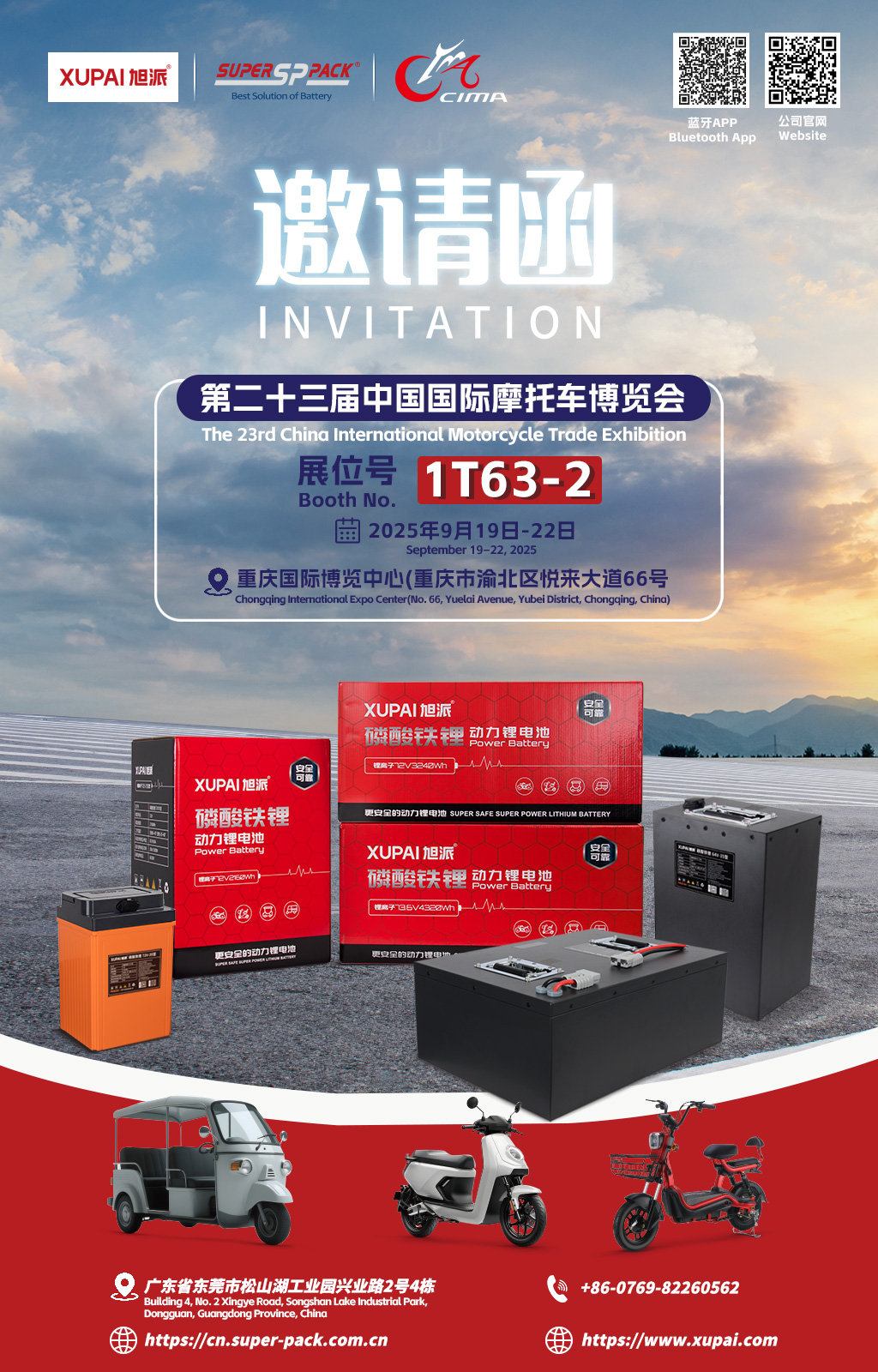 Superpack will present at the 23rd China International Motorcycle Expo, highlighting innovative battery technologies for electric motorcycles. The event will be held from September 19 to 22, 2025, at Chongqing International Expo Center (No. 66 Yuelai Avenue, Yubei District), with Superpack located at Booth 1T63-2.